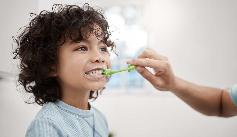Even before the first tooth erupts, your child’s gums should be wiped gently with a wet cloth or gauze after every feeding. At the appearance of the first tooth, begin brushing your child’s teeth with water. Children older than 2 years should be supervised during brushing to ensure that only a pea-sized amount of fluoride toothpaste is used, and that the toothpaste is spit out rather than swallowed, and they rinse with water afterward.